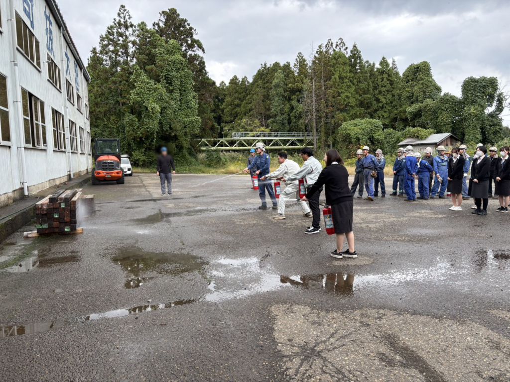 避難訓練、消火器訓練を実施しました。 (10/17安塚工場・10/27三和工場・10/27本社)